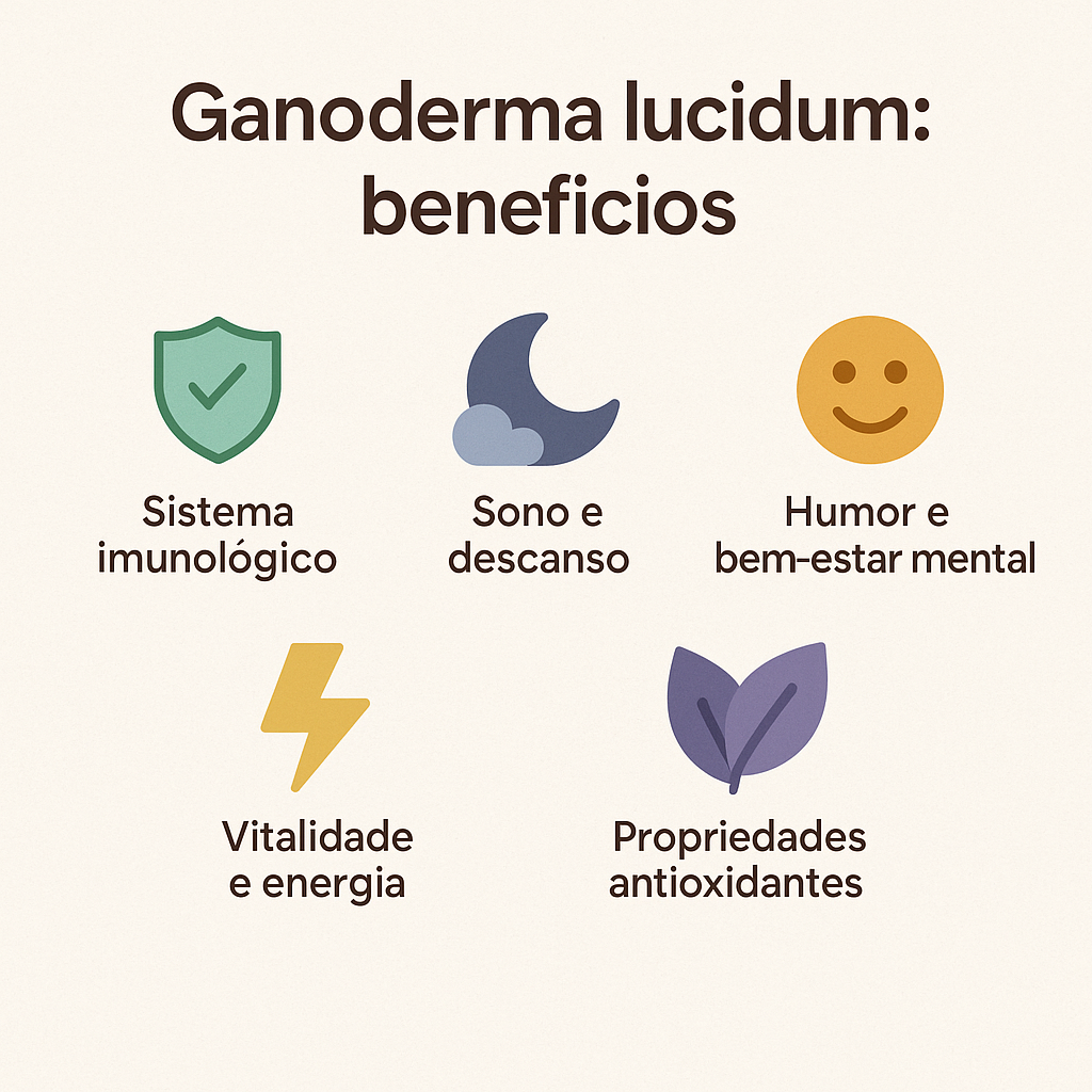 - O Ganoderma é rico em moléculas com ação antioxidante, que podem ajudar a reduzir o impacto do estresse oxidativo no organismo.
